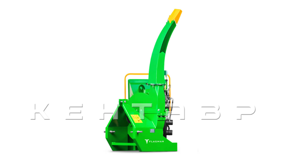Измельчитель Флагман модели 62R способен обрабатывать ветви диаметром до 300 мм и имеет производительность 3000 кг/ч. Выброс щепы возможен до 6 метров в зависимости от положения дефлектора. Активный захват и расположенный параллельно земле загрузочный бункер увеличивают производительность и эффективность.