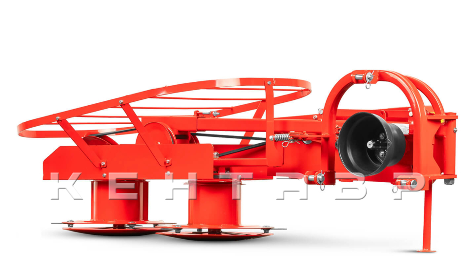 Два барабана с 3 ножами на каждом вращаются навстречу друг другу, образуя режущий аппарат. Шарнирное крепление ножей снижает риск повреждения при кратковременном контакте с твёрдыми включениями и упрощает замену ножей. Ширина захвата 1000 мм, рабочая скорость до 8 км/ч: производительность до 0,8 га/ч с учётом разворотов, перекрытий и неоднородной травы.