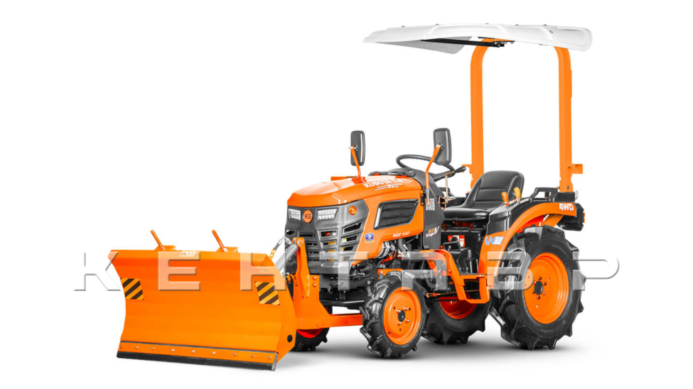 Отвал монтируется на трактора Kubota T-4K и Kubota T-344 в средней части остова, а также спереди – в месте крепления утяжелителей. Благодаря такому решению нагрузка распределяется равномерно, исключая деформацию передней рамки трактора и рамы отвала.