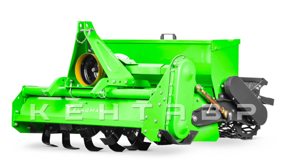 Система навески стоунбурьеров Flagman выполнена из широкой листовой стали толщиной 6 мм. Несущая рама собрана из трубы диаметром 60 мм, прямоугольного профиля 50×50 мм и усилена пластинами толщиной 8 мм в местах крепления привода и рабочего вала. Такая конструкция выдерживает ударные нагрузки при работе по каменистой целине, рама со временем не меняет геометрию и не лопается.