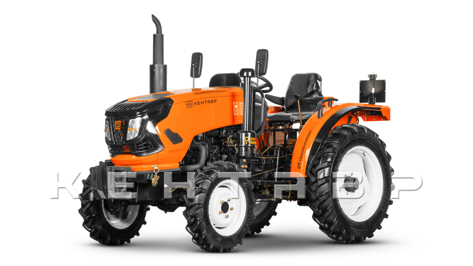 На Кентавр Т-254 устанавливается усиленный ведущий мост портального типа от трактора 30 л.с. Он выдерживает работу с фронтальным погрузчиком до 700 кг, при этом дорожный просвет не менее 255 мм. Усовершенствованные уплотнения гарантирую высокую защиту от влаги и пыли. Радиус разворота равен 4.5 метров.